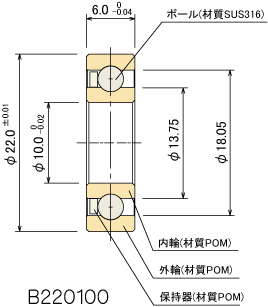 | TOP>製品情報>樹脂ベアリング・ねじ付きベアリング>Bシリーズ>B220100 |